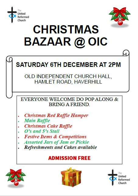 SATURDAY 6TH DECEMBER AT 2PM – CHRISTMAS BAZAAR – IN THE CHURCH HALL