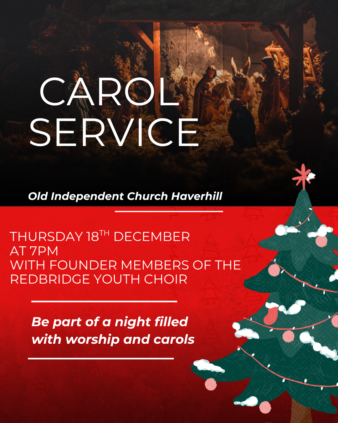 Come and join us for a Traditional Service of Nine Lessons and Carols, accompanied by: Founder Members of the Redbridge Youth Choir (Directed by Roderick Elms, Organist: David Parry Smith) ADMISSION FREE